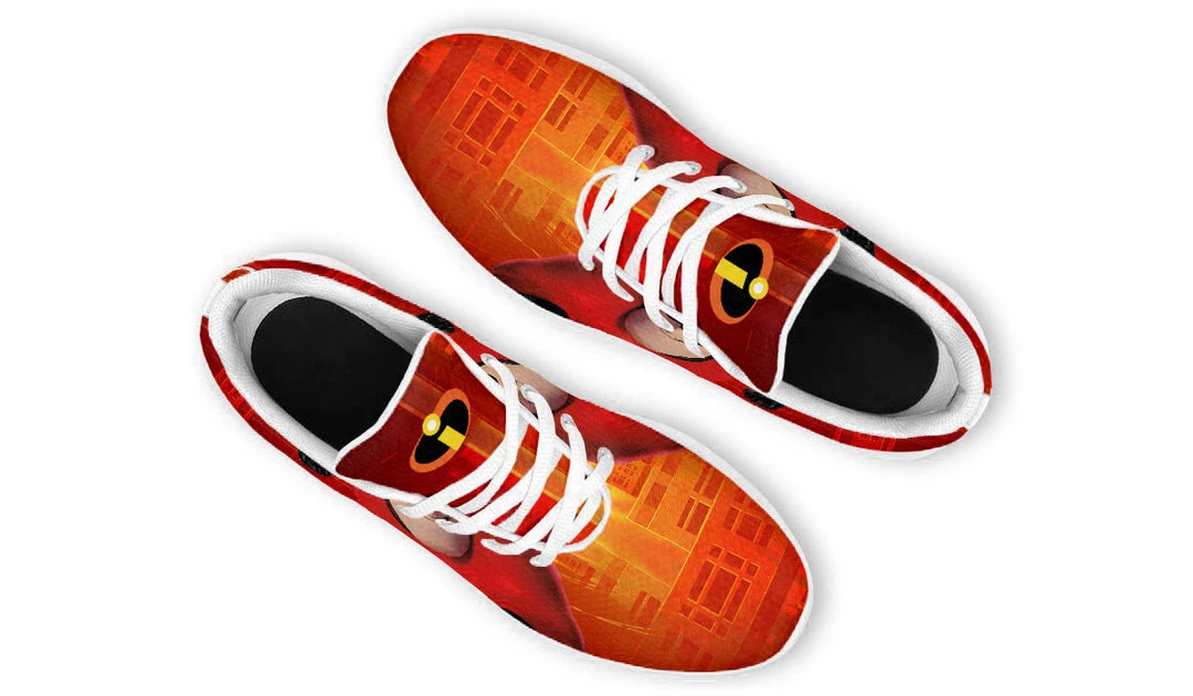 Feel super and be super with these incredible kicks featuring Mr. Incredible on an action packed-yellow and red gradient background!